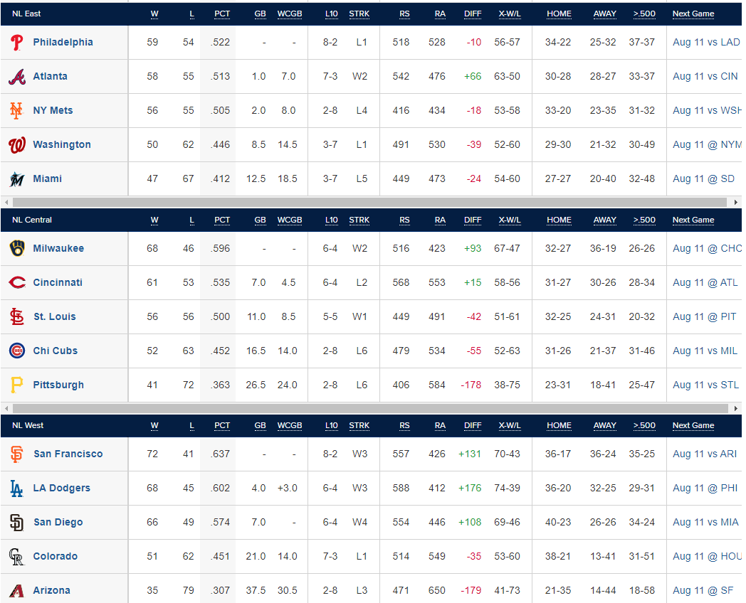 NL 같은경우엔 샌프란시스코가 3연승을 달리며 여전히 전체 1위 승률을 유지하는중..