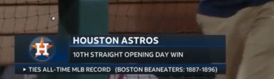 오늘 개막전 승리로 휴스턴은 개막전 10연승을 달성하였고